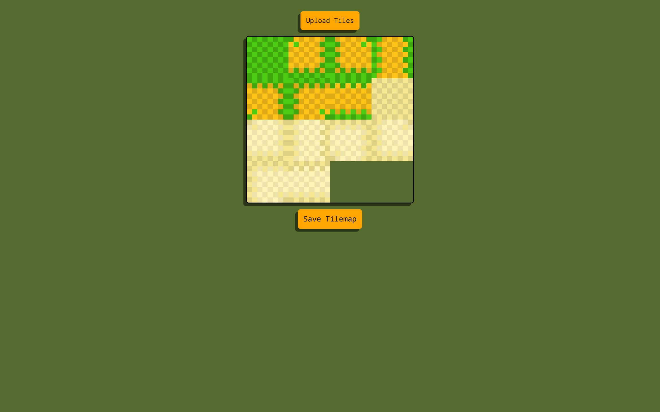 Click the 'Upload Tiles' button and select all single image tiles that you want to combine. Then, after loading the images, you will see a preview of your tilemap. Then, click the 'Save Tilemap' button to save your tilemap as a .png image!